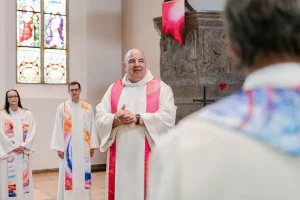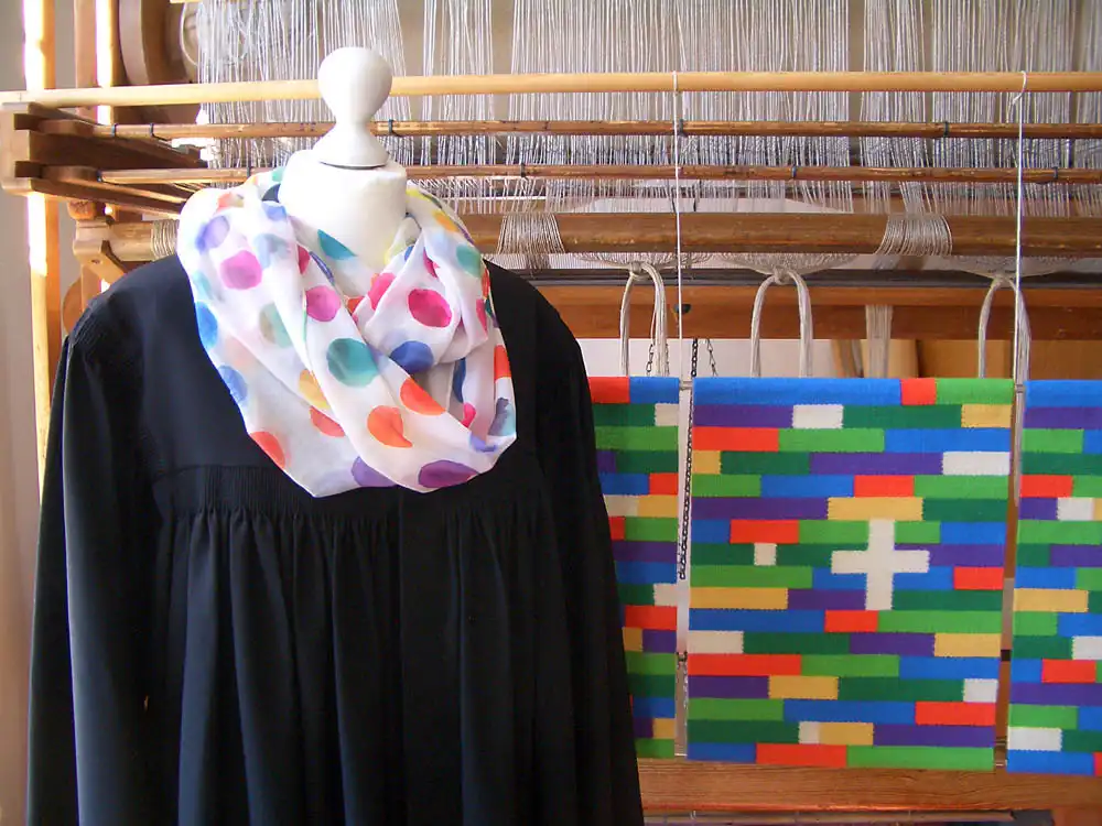In unserer Werkstatt fertigen wir konfessionsübergreifend Gewänder: Kaseln für katholische Kirchen, Diakon- und Diakon*innenstolen für katholische und evangelische Kontexte sowie Talare für Pfarrer*innen und Prädikant*innen im evangelischen Bereich. Passende Beffchen führen wir lutherisch, uniert und reformiert mit mehr als fünf verschiedenen Befestigungsarten aus.