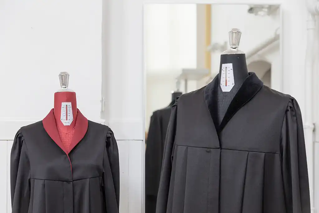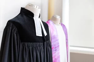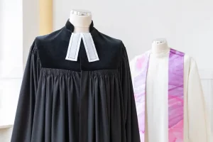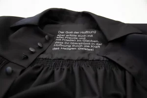 Alle Gewänder fertigt unsere Schneiderin individuell nach Maß. Dafür misst sie Sie persönlich aus – idealerweise bei einem Besuch bei uns im ehemaligen Betsaal der Neuendettelsauer Diakonissen. Stoffe, Schnitte und Details wie Kragen, Futter oder Stickereien wählen Sie nach Ihren Wünschen, auch Sonderanfertigungen – wie zum Beispiel ein buntes Futter – sind möglich. Die Herstellung erfolgt in sorgfältiger Handarbeit und benötigt in der Regel etwa ein halbes Jahr.